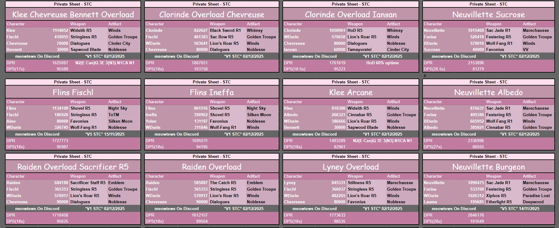 ✦ Сборки https://docs.google.com/spreadsheets/d/1gNxZ2xab1J6o1TuNVWMeLOZ7TPOqrsf3SshP5DLvKzI/pubhtml?gid=100510092#
