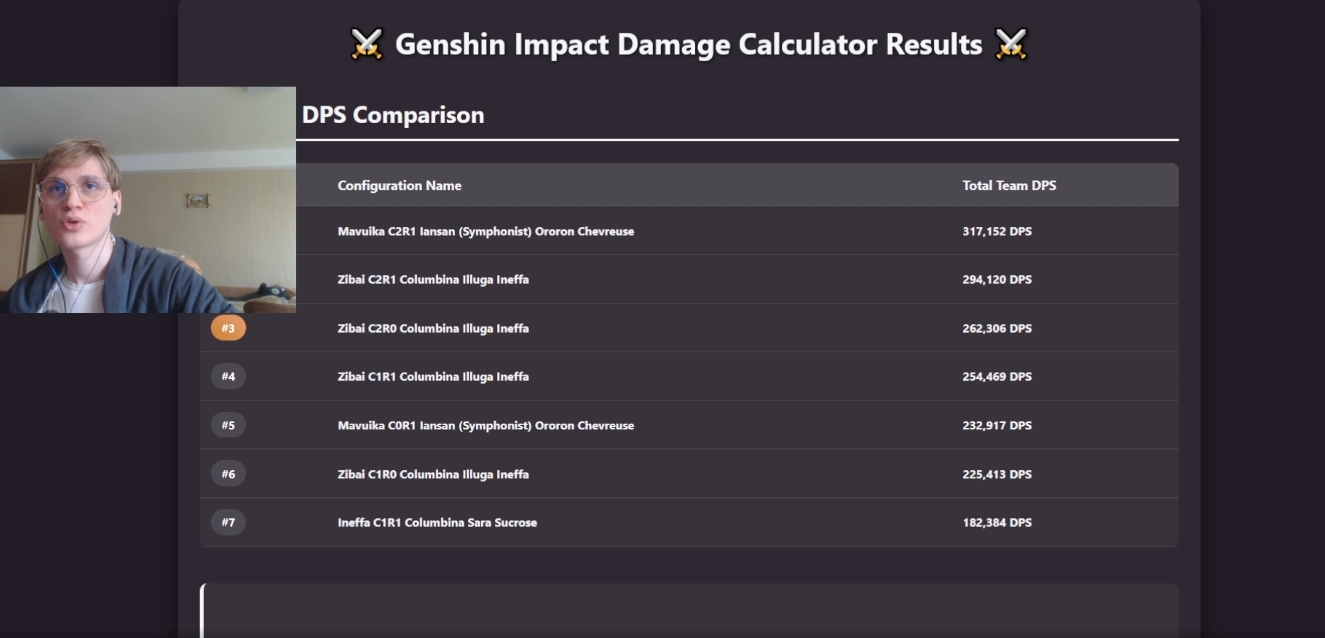 ✦ Калькуляторы урона https://frzyc.github.io/genshin-optimizer/ ∙ https://teucerdev.github.io/little-bro/ ∙ https://gcsim.app/