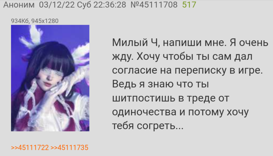 >>1325490 Продолжу играть в Геншин. >>1325499 Так она такая. Вангую во снах приходит к кому надо и удовлетворяет все желания народа. >>1325508 Пробовал я как-то вкатиться в Синий архив. Аниме посмотрел, всех лучших девочек игры выкрутил, сюжет прошел, аккаунт до 70 что ли уровня вкачал. И там так и сделал как ты предлагаешь. Но если игра интересная, да еще и с лолями - смысл играть в неё всегда есть.