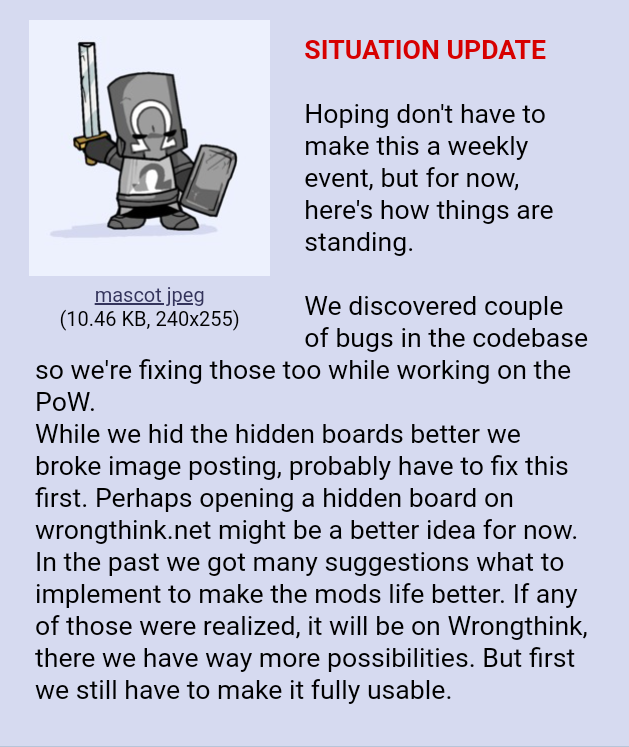 Пожалуйста, в случае если появляются посты нарушающие правила — репортите их. Если очень хочется отправить что-то запрещённое — репортите сами, посты всё равно удаляют с ощутимым лагом и почти никого не банят.
